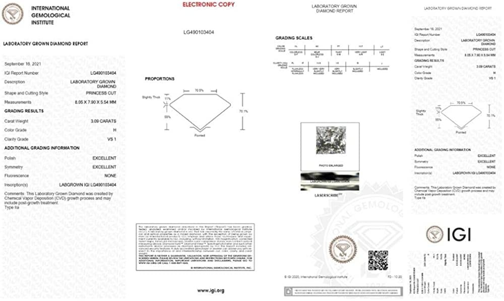3.09 克拉认证公主方形单石钻石吊坠黄金实验室培育