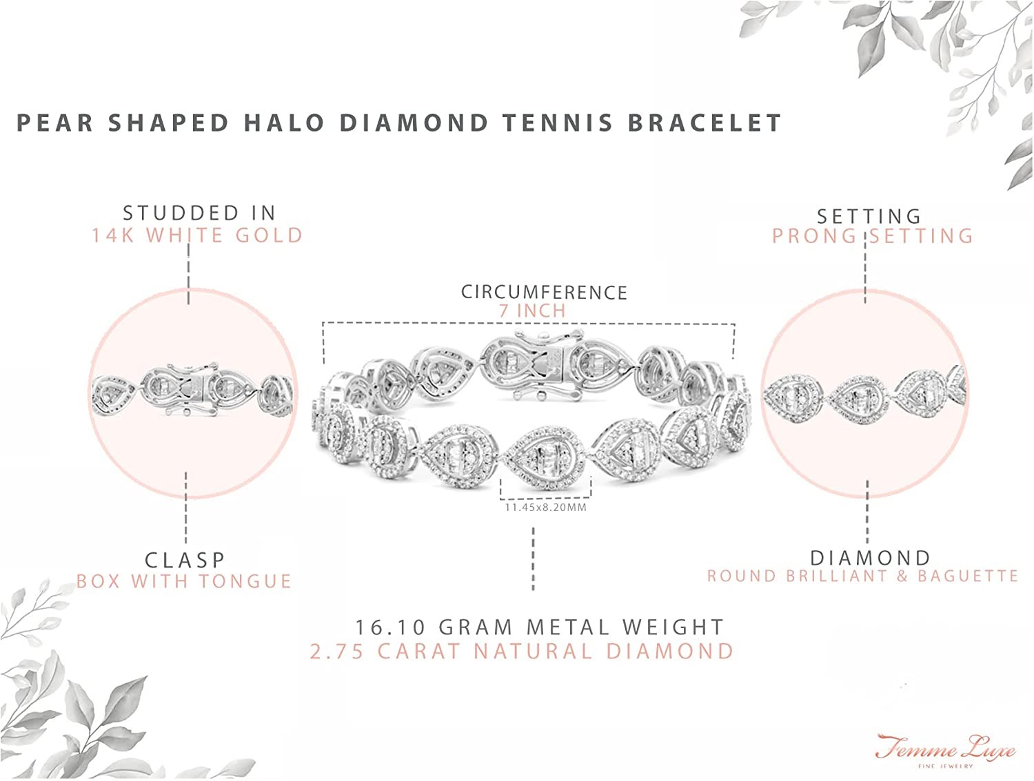 Femme Luxe Pear Shaped Halo Diamond Tennis Bracelet (2.75 Carats
