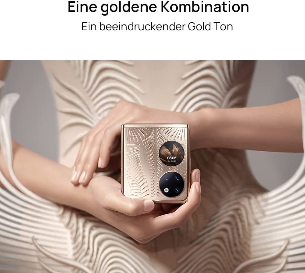 HUAWEI P50 Pocket Premium - faltbares Smartphone, 3D-Mikroskulptur-Design, Ultra-Spektrum Kamera, 6,6 Zoll OLED Display, Sonnenschutzerkennung, 12GB RAM+512GB ROM, Gold