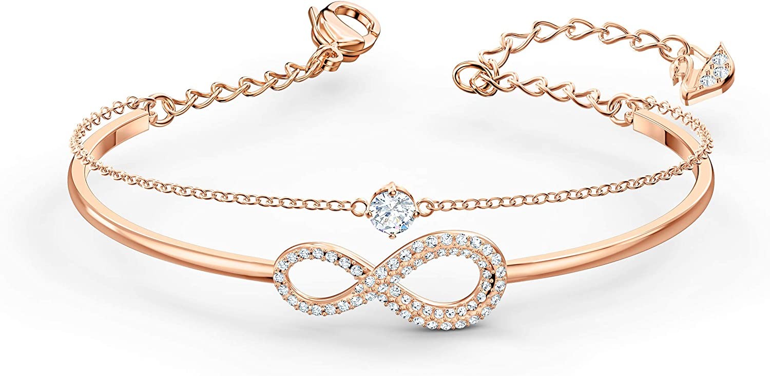 • This elegant Swarovski bracelet combines rhodium plating with white crystals.The symbol of infinity shines in the dawn of the night like the first star in the sky.Rhodium-plated necklace and elegant crystal fusion.The perfect gift for a special occasion - for a loved one or yourself.Every piece of jewelry benefits from the exceptional quality, precision and extraordinary brilliance of Swarovski crystals.